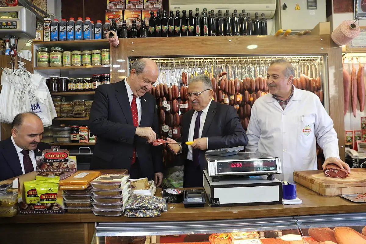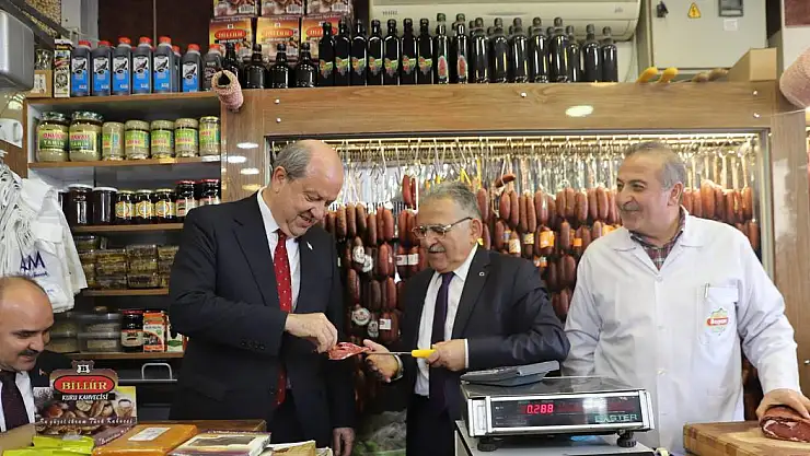 Esnaf ve vatandaşlarla selamlaşan ve onlardan büyük ilgi gören Başbakan Ersin Tatar, “KKTC’nin es cumhurbaşkanlarından Derviş Eroğlu’nun Kayserili olduğunu ve Kayseri’de akrabaları bulunduğunu söyledi. Esnaf ziyaretleri Tarihi Kapalıçarşı esnafıyla devam etti. Esnaf ve vatandaşların ziyaretten duydukları memnuniyeti dile getirmeleri üzerine Büyükşehir Belediye Başkanı Büyükkılıç’ın kendisini Kayseri’ye davet ettiğini dile getiren Başbakan Tatar, kendisinin de bu davete hemen icabet ettiğini belirtti. Bu sırada bir vatandaşın Kıbrıs’ta askerlik yaptığını ifade etmesi üzerine Başkan Büyükkılıç, herkesin Kıbrıs ile bir bağı olduğunu söyledi. Başbakan Tatar da bu bağların zenginlik olduğunu dile getirdi. Vali Günaydın ve Başkan Büyükkılıç ile esnaf ziyaretleri yapan Başbakan Tatar, bir esnafın ikramı üzerine kahve içtiler ve vatandaşlarla fotoğraf çektirdiler.