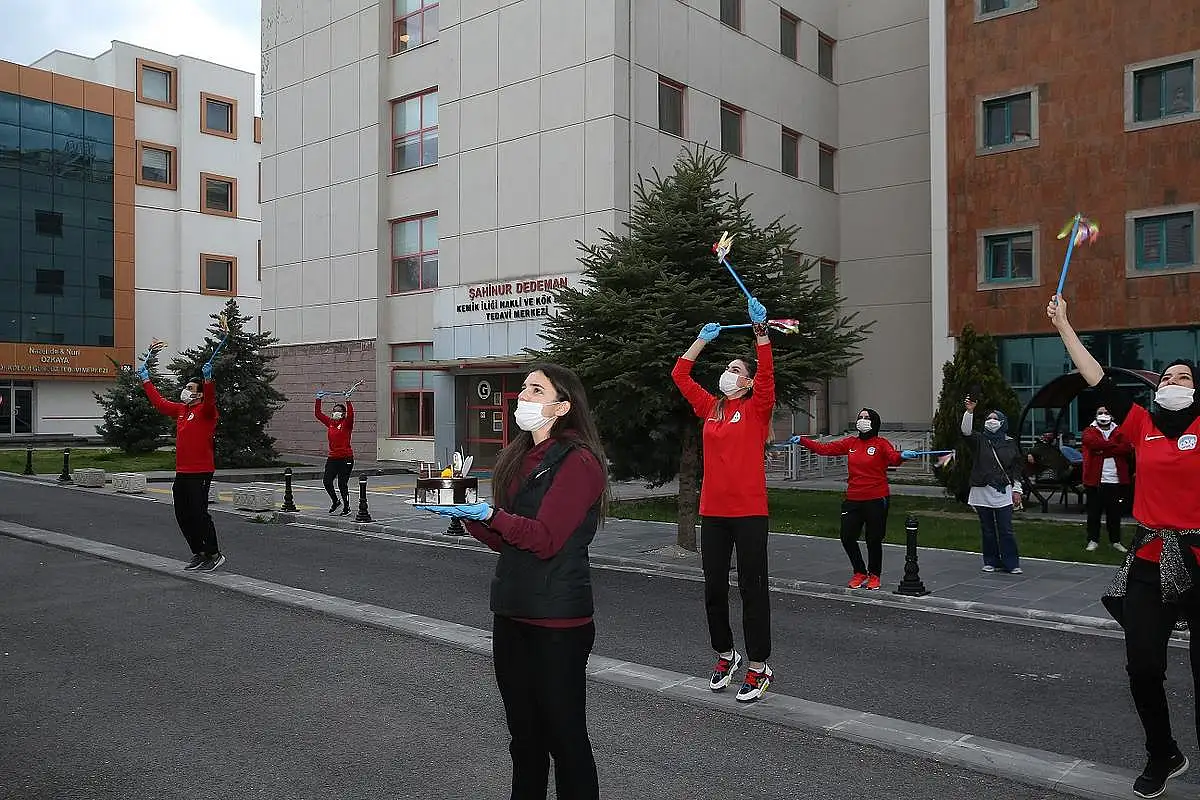 Duygu dolu anların yaşandığı gösterilerde hastanelerdeki tüm hastalara şifa temennisinde bulunuldu.