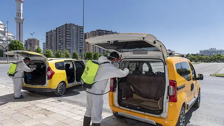 Kayseri Büyükşehir Belediyesi, sağlıklı bir ulaşım için toplu ulaşım araçlarının yanı sıra ticari taksileri de dezenfekte ediyor.Kayseri'de bulunan yaklaşık 800 taksinin dezenfekte işlemi Büyükşehir Belediyesi ekipleri tarafından yapılıyor.