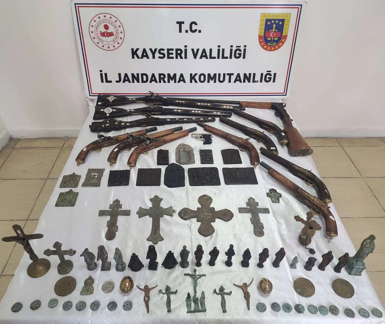 Kayseri'de jandarma ekipleri, 'Anadolu Mirası' operasyonu kapsamında Roma ve Bizans dönemlerine ait olduğu değerlendirilen 80 tarihi eseri ele geçirdi.