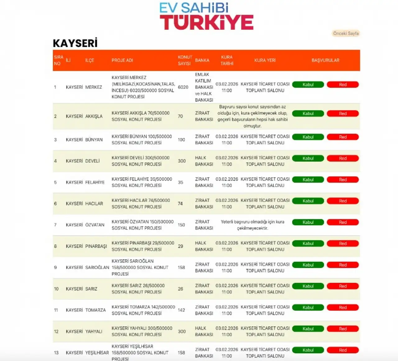 Yetkililer, kura sürecinin şeffaf bir şekilde yürütüleceğini belirtirken, başvuru yapan binlerce Kayserili gözünü 3 Şubat’taki çekilişe çevirmiş durumda.