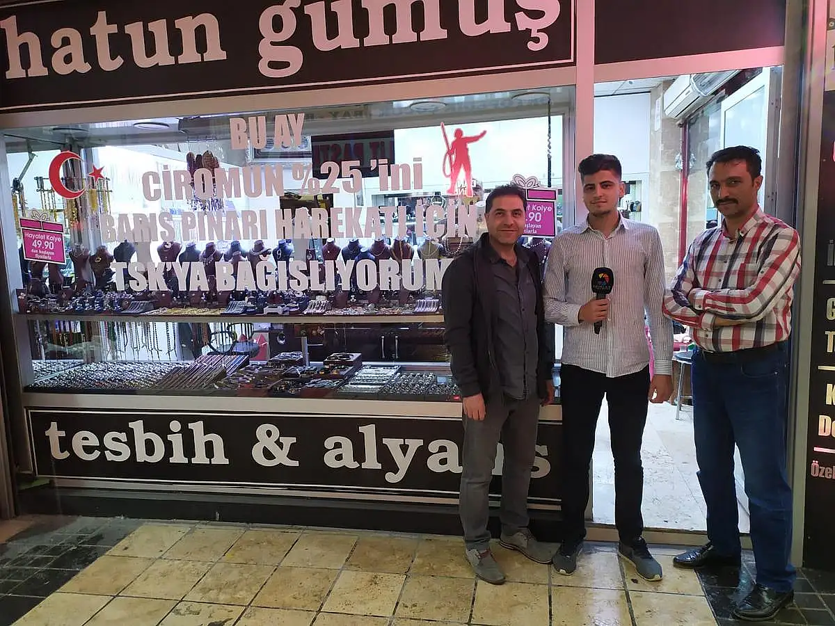 Ordumuzun başarılı bir şekilde yürüttüğü Barış Pınarı Harekatı’nın sekizinci günü geride kaldı. Askerlerimiz vatan aşkıyla Suriye’nin sınır ötesinde mücadelesini sürdürüyor. Kayseri’deki Hatun Gümüşçülük’de Barış Pınarı Harekatı’na desteğini gösterdi. Bu ay ki cirolarının %25’ini TSK’ya bağışlayacaklarını açıkladılar. İşletme sahibi Hakan Altıntepe ve Yavuz Kaynar, vatan için ellerinden geleni yaptıklarını dile getirdiler.