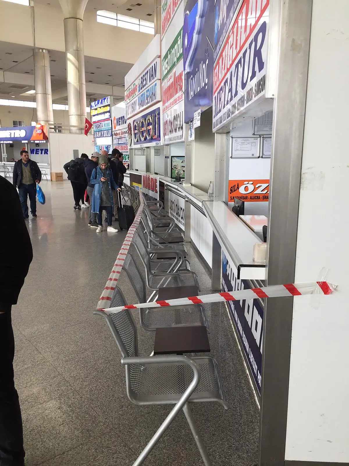 Çin'in Wuhan kentinde ortaya çıkan korona virüs, ülkemizde görüldükten sonra önlemler alınmaya başlandı.Kayseri Otogarı'nda da bilet gişelerinin önüne banklar konarak vatandaşların ve bilet satanların arasında sosyal mesafe korunuyor.