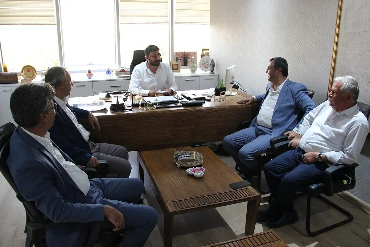 Kayseri Sanayi Odası Başkanı Mehmet Büyüksimitci ve Kayseri Sanayi Odası Meclis Başkanı Abidin Özkaya Hunat TV’ye ziyarette bulundu. Ziyarete gelen Başkan Büyüksimitci ve Abidin Özkaya, Açıkgöz Medya Yönetim Kurulu Başkanı Rifat Açıkgöz ve Hunat TV Genel Yayın Yönetmeni Kürşat Açıkgöz’e hayırlı olsun dileklerinde bulundu.