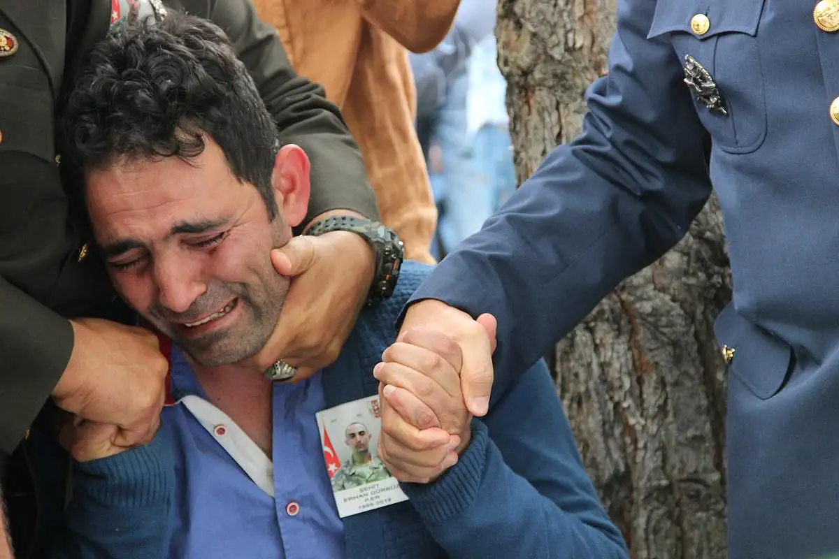 Şehidin babası cenazeye sarılarak: "Oğlum 15 gün sonra geleceğim diyordun. Neredesin şimdi?" diyerek feryat etti.