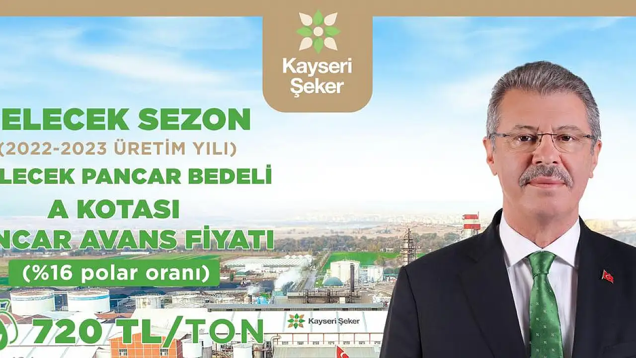 Şeker tarihinde ilk kez Kayseri Şeker tarafından avans niteliğinde açıklanan pancar bedelinin 720 TL’ye çıkması; pancar üreticilerinin önünü görmesi, planlama yapmasının yanında pancardan para kazanabileceğini şimdiden bilmesi açısından büyük önem taşıyor.