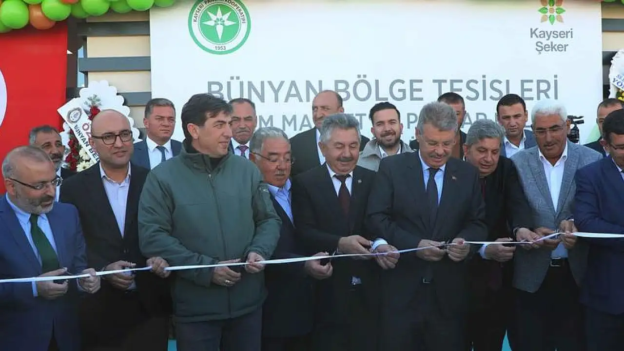 Kayseri Şeker'in Bünyan'a kazandırdığı tarım market ve bölge müdürlüğü hizmet binası törenle hizmete açıldı.Bünyanlı çiftçilerin yoğun ilgisi altında gerçekleştirilen törende konuşan Kayseri Pancar Ekicileri Kooperatifi Yönetim Kurulu Başkanı Hüseyin Akay