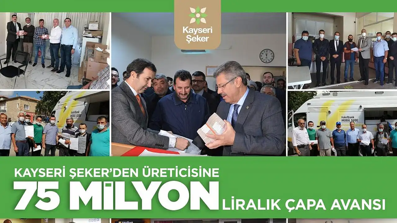 Kayseri Şeker 2021-2022 Kampanya döneminde Kayseri, Turhal ve Boğazlıyan Fabrikaları'na bağlı sözleşmeli pancar ekimi yapılan 21 bölgede toplam 13 bin 876 çiftçiye, 74 Milyon 838 bin lira çapa avansı ödüyor.Tarladan Fabrikaya uzanan tüm süreçleri özenle