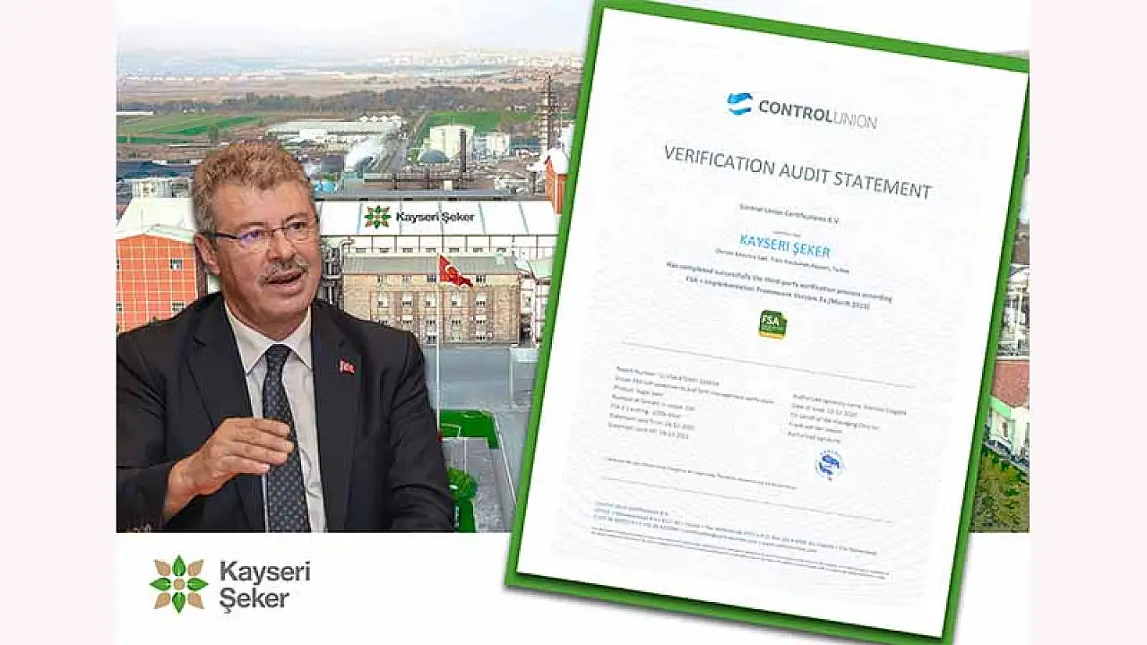 Hinterlandındaki tarımsal çalışmaları kapsamında çiftçilerin sürdürülebilir tarım faaliyetleri ve ürün kalitesini kanıtlayarak, başarısını en üst noktaya taşıyan Kayseri Şeker, sektöründe yine bir ilke imza attı. Sürdürülebilir tarım ürünleri satışı noktasında en büyük platform olan ve içerisinde dünyanın en güçlü gıda firmalarının yer aldığı SAI (Sürdürülebilir Tarım Girişimi Platformu’na) ürün pazarlanabilmesine olanak sağlayan en önemli belgelerden bir tanesi olan Gümüş FSA (Çiftlik Sürdürülebilirlik Değerlendirme Belgesi), Control Union Denetleme Firmasının tüm denetimlerinden başarı ile geçen Kayseri Şeker’e verildi.