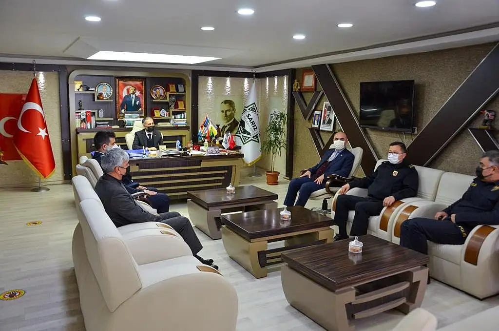 Kayseri Valisi Şehmus Günaydın ve beraberindeki heyet Sarız ilçesini ziyaret ederek Sarız Sosyal Yaşam Merkezi’nde muhtarların sorun ve taleplerini dinlediği çözüm odaklı toplantı gerçekleştirdi. Vali Günaydın ve beraberindeki heyet, Sarız Belediye Başkanı Baki Bayrak’ı makamında ziyaret etti. Sarız Sosyal Yaşam Merkezi’nde gerçekleşen toplantıya Kayseri Valisi Şehmus Günaydın, Kayseri Emniyet Müdürü Kâmil Karabörk, Sarız Kaymakamı İsmail Şanal, Sarız Belediye Başkanı Baki Bayrak, Kayseri İl Jandarma Alay Komutanı Tuğgeneral Dr. Yüksel Yiğit, Kayseri Büyükşehir Belediyesi Genel Sekreter Yardımcısı Bayar Özsoy ve Daire Başkanları katılarak muhtarları dinledi.