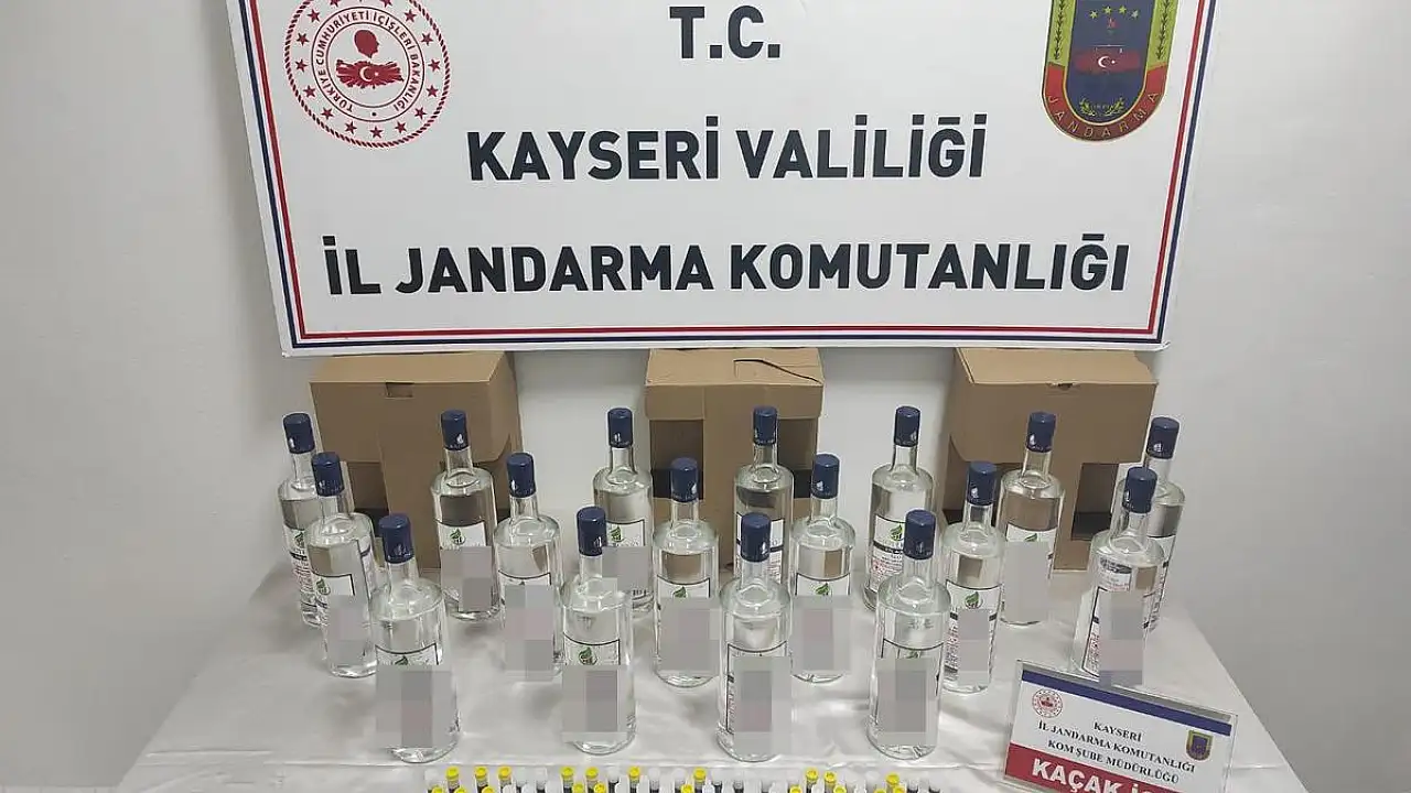 Kayseri İl Jandarma Komutanlığı ekiplerince yapılan çalışmalarda 17 litre kaçak alkol ele geçirildi.Edinilen bilgiye göre İl Jandarma Komutanlığı ekipleri Melikgazi ilçesinde E.