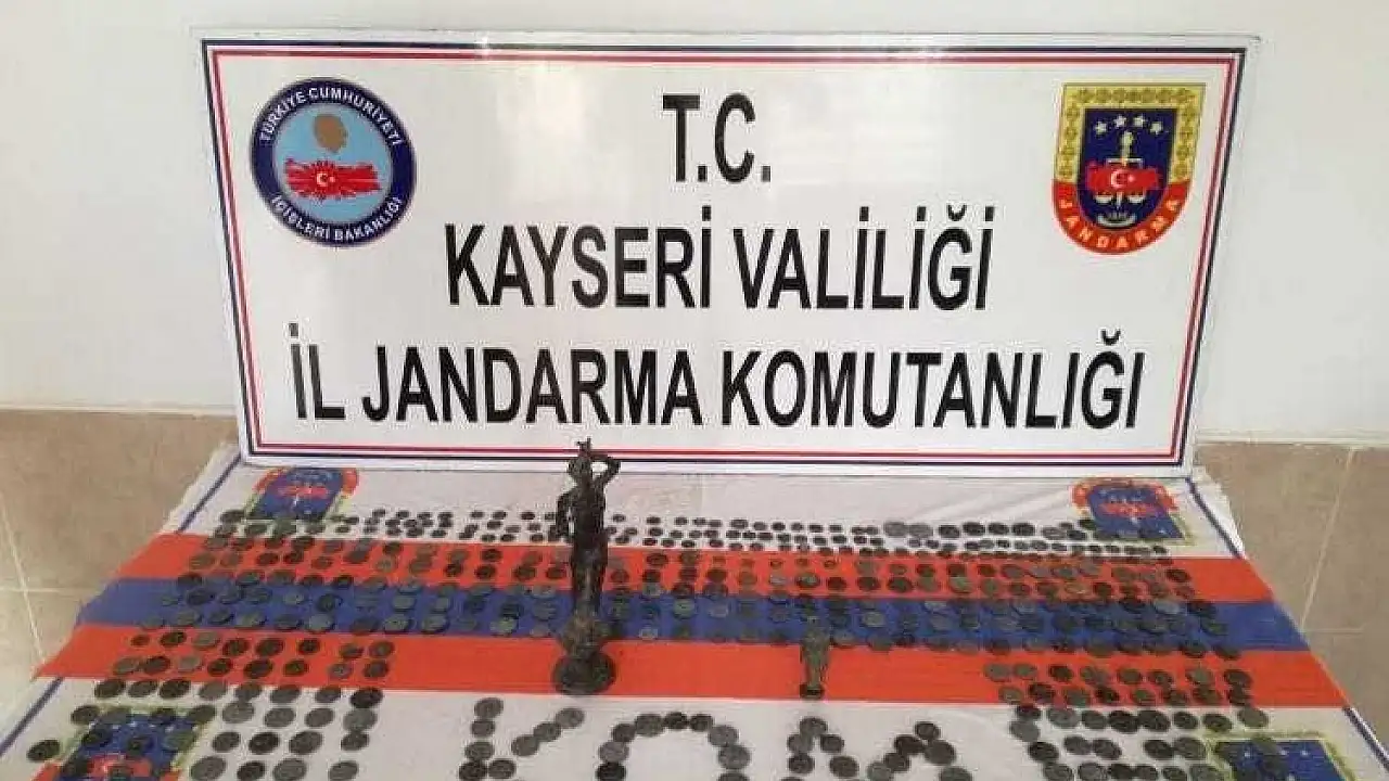Kayseri’de jandarma ekiplerinin tarihi eser kaçakçılığı yapan şahıslara yönelik düzenlediği operasyonda, 507 adet sikke ve 2 adet madeni heykel ele geçirildi.