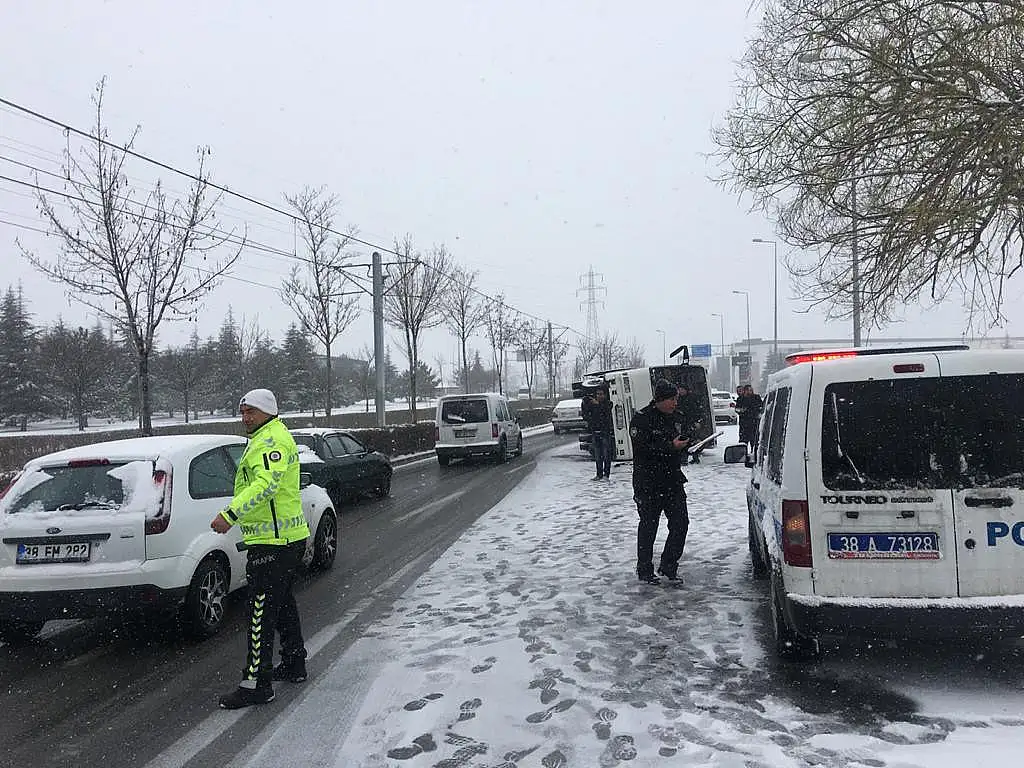 Edinilen bilgiye göre, Melikgazi ilçesine bağlı Şehit Taha Carım Bulvarı üzerinde meydana gelen olayda Y.Ş yönetimindeki 38 P 1722 plakalı işçi servisi, kayganlaşan yolda kaldırıma çarparak devrildi. Kazada servis içerisinde bulunan 21 işçi yaralanırken, ihbar üzerine çok sayıda ambulans sevk edildi. Yaralılar, ambulanslar ile çeşitli hastanelere kaldırılarak tedavi altına alındı.