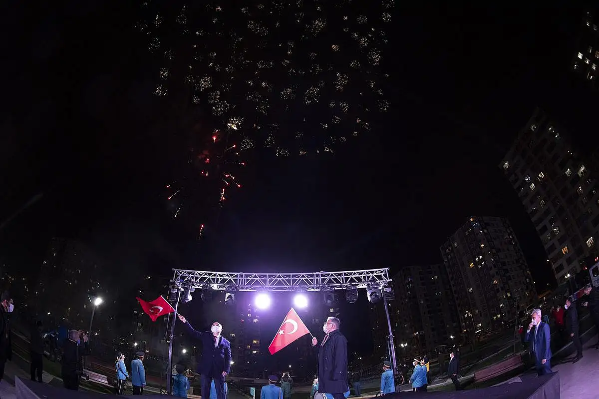 Yenidoğan Mahallesi’nde gerçekleştirilen kutlamalarda saatler 21.00’ı gösterdiğinde tüm Türkiye’de olduğu gibi İstiklal Marşı okundu. İstiklal Marşımızın ardından ise muhteşem bir havai fişek gösterisi gerçekleştirildi.