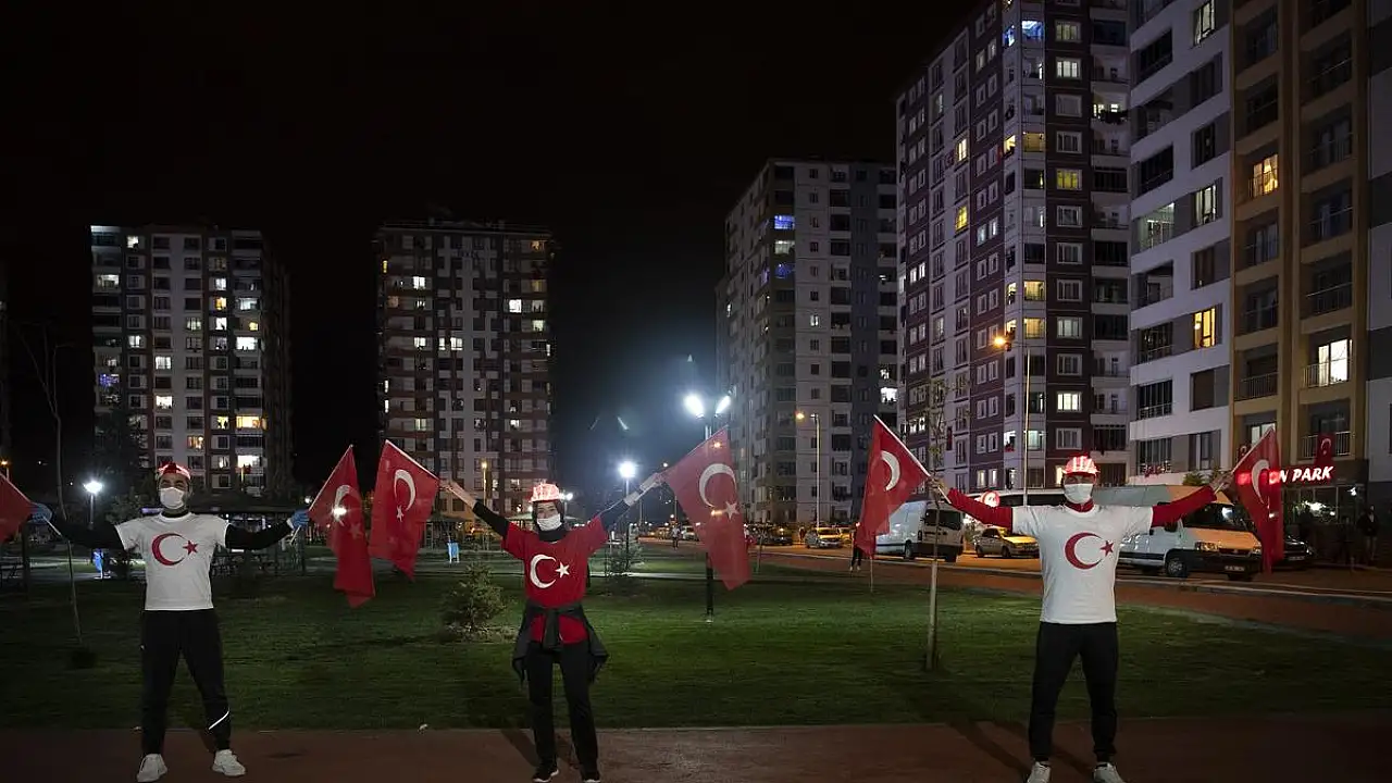 Kutlamalara Büyükşehir Belediye Başkanı Dr. Memduh Büyükkılıç da katıldı. Başkan Büyükkılıç, balkon ve pencerelerdeki halkı selamlayarak etkinlik alanına geçti. Bu sırada Büyükşehir Belediyesi bando takımı da marşlar seslendirdi. Bando takımının marşlarına evlerinde büyük bir coşkuyla katılan vatandaşlar, mehter marşlarına da evlerinin ışıklarını söndürüp yakarak ve alkışlarla eşlik etti. Kutlamalara ilerleyen dakikalarda Vali Şehmus Günaydın da katıldı. Vali Günaydın ve Başkan Büyükkılıç, ellerindeki ay yıldızlı bayrağımızı sallayarak coşkuya eşlik etti.