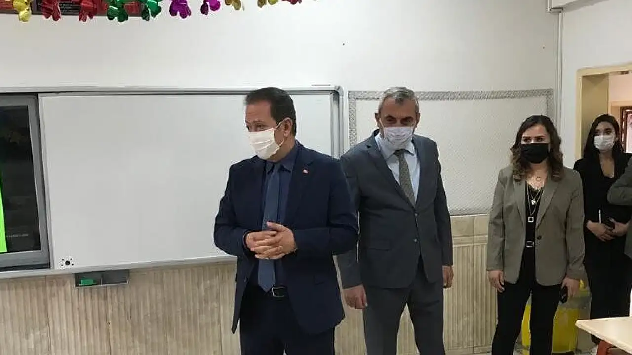 Devletin bütün kademelerinin çocukların sağlığı açısından önlem aldığını söyleyen Celalettin Ekinci, “Bu hafta, uygulamamızın 2. haftası. 2. haftamızda da yine çocuklarımız haftada 2 gün olmak üzere okula gelecekler. Eğitim ve öğretime bu şekilde devam edecekler. Tabi takdir edersiniz ki, ana sınıflarında ve 14. Sınıflar da uzaktan eğitim çok mümkün değil. Şunu gönül rahatlığıyla ifade edebilirim ki, devletin bütün kademeleri çocuklarımızın sağlığı açısından her türlü önlemi alıyor. Okullarımız her türlü dezenfektan, maske ve mesafe kurallarına uygun bir şekilde dezenfekte ediliyor. Bunun bir diğer yönü de covid ile mücadele de covid’in buluşma yollarını, korunma yollarını çocuklarımıza, öğretmenlerimize anlatılması. İlimiz de 47 tane okul bu manada pilot seçildi. Şu anda içinde bulunduğumuz okulda bunlardan bir tanesi. Covid’in bulaşma yollarını, nasıl korunacağımız konusunda uzmanımızdan, doktorumuzdan bilgi almak için buradayım. Emek veren tüm kademelere, tüm kurumlara çok çok teşekkür ediyorum. Bizler üzerimize düşen mesafeyi büyük bir hassasiyet içerisinde yerine getirmek için gayretle çaba gösteriyoruz. Çocuklarımızın bize emanet olduğunu bir kez daha ifade ediyorum. Elimizden geldiği kadar onları hazinelerimiz olarak koruyacağız. En büyük değerlerimiz olarak koruyacağız” dedi.