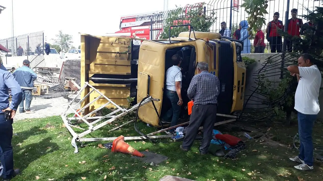 KAYSERİ'DE KAMYON YAN YATTI, YARALILAR VAR!