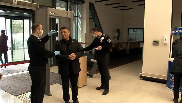 Çin'in Wuhan kentinde ortaya çıkan ve Türkiye'de de görülen korona virüsün önlenmesi amacıyla tedbirler artırıldı. Melikgazi Belediyesinde de virüse karşı alınan tedbirler kapsamında belediyeye işlemler için gelen vatandaşların önce ateşi ölçülüyor, ardından da ellerine dezenfektan sıkılıyor. Melikgazi Belediye Başkanı Mustafa Palancıoğlu da yapılan meclis toplantı öncesinde ateş ölçer ile meclis üyelerinin ateşlerini ölçtü.