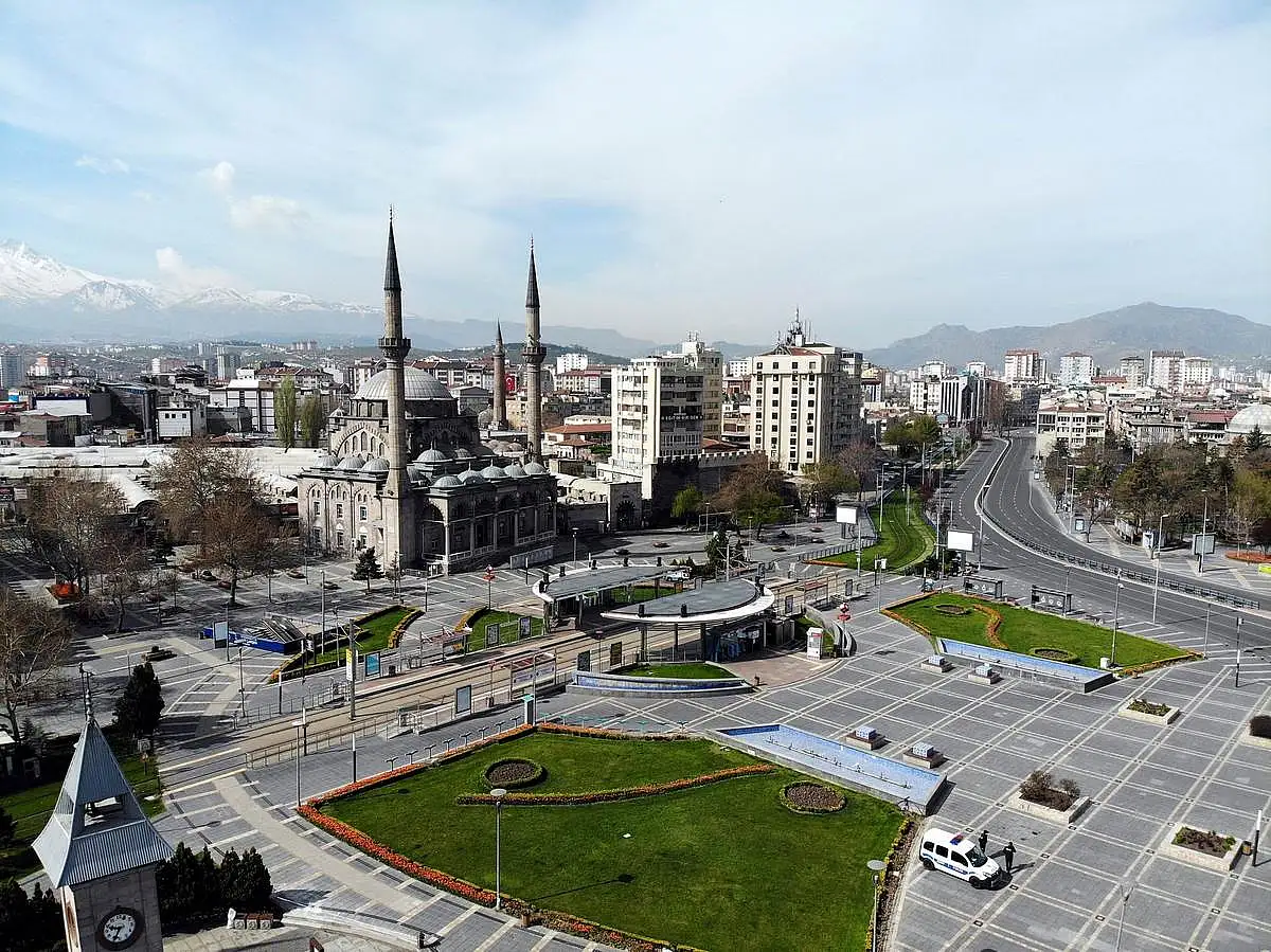 İçişleri Bakanlığı tarafından Korona virüs tedbirleri kapsamında 31 ilde 2 gün süreyle başlatılan sokağa çıkma kısıtlamasının ardından Kayseri'de sokaklar ve caddeler boş kaldı.