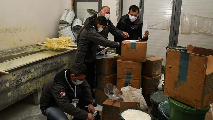 Kayseri'de, sağlıksız koşullarda uygun olmayan hammadde kullanarak, sahte peynir üretimi yapan işletmeye İl Tarım ve Orman Müdürlüğü ekipleri ve polis ekiplerinin düzenlediği operasyon sonucu 55 bin 754 TL para cezası kesilmesinin ardından denetleme görün