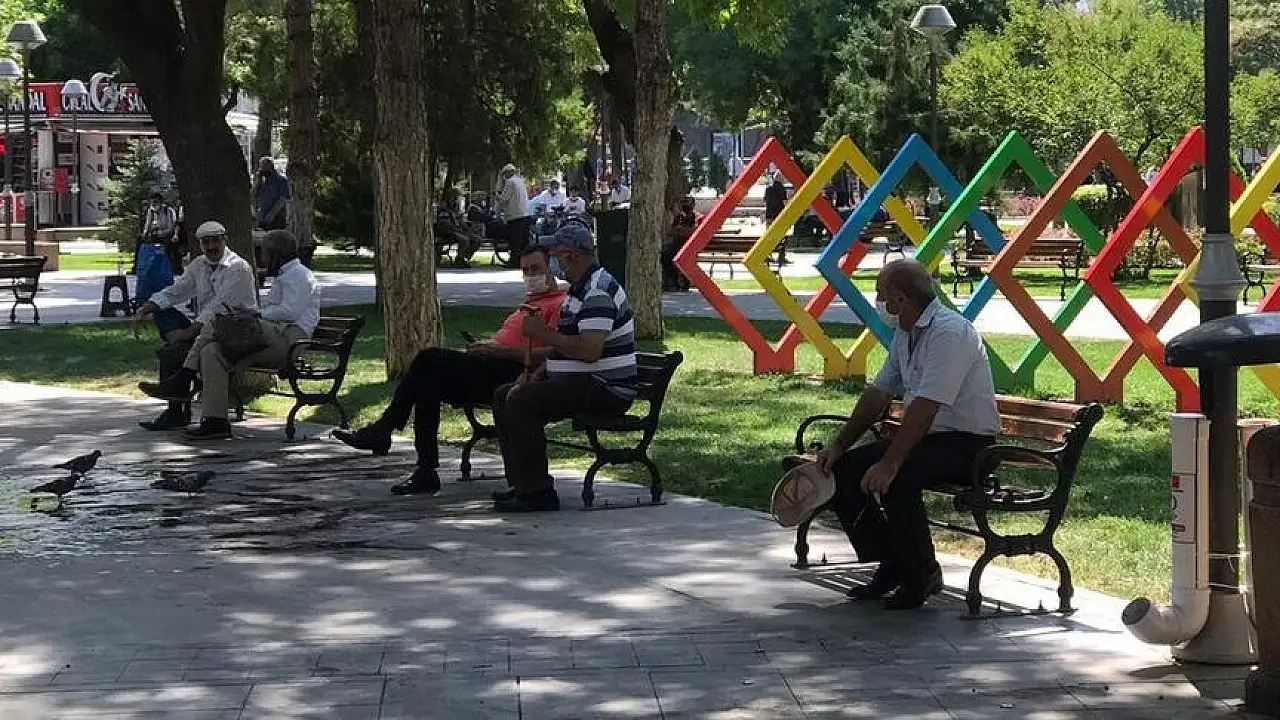 Kayseri'de artan sıcaklıklardan korunmak isteyen vatandaşlar ağaç gölgelerine sığındı.