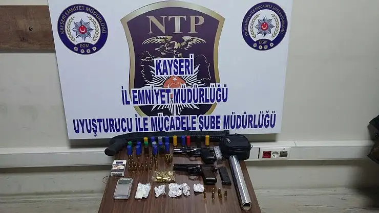 Kayseri'de, Uyuşturucu İle Mücadele Şube Müdürlüğü ekipleri tarafından çalışmalarda 9 kişi, av tüfeği, tabanca ve 4.40 gram metamfetamin maddesi ile birlikte yakalandı.
