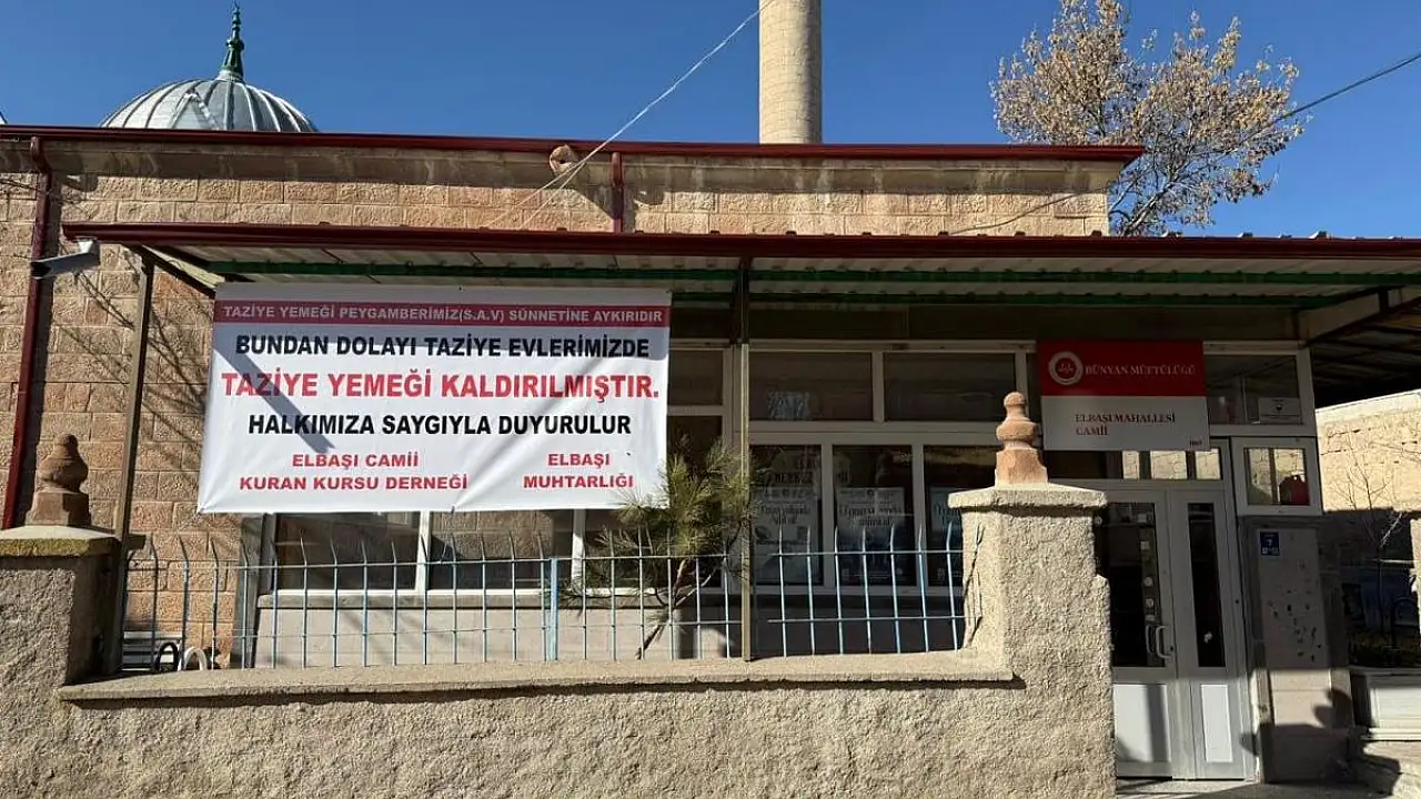 Bünyan ilçesine bağlı Elbaşı mahallesinde Cami ve Kur'an kursu derneği ve muhtar kararı ile alınan kararla birlikte cenaze yemeği kaldırıldı. Konuyla ilgili mahalleye bağlı bir camide bilgilendirme pankartı asıldı. Pankartta, "Taziye yemeği peygamberimiz (S.A.V) sünnetine aykırıdır. Bundan dolayı taziye evlerimizde taziye yemeği kaldırılmıştır. Halkımıza saygıyla duyurulur" ifadeleri kullanıldı.