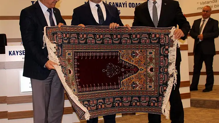 Meclis toplantısının sonunda Sanayi Odası Meclis Başkanı Abidin Özkaya ve Sanayi Odası Başkanı Mehmet Büyüksimitçi tarafından Büyükşehir Belediye Başkanı Mustafa Çelik’e günün anısına halı hediye edildi.
