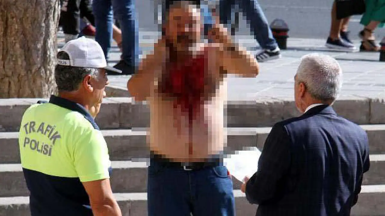 KAYSERİ'de sosyal yardımlaşma ve dayanışma derneğinden istediği yardımı alamadığı iddiasıyla vücudunu jiletleyen uyuşturucu madde bağımlısı olduğu öne sürülen Ali S.'yi (53), Vali Yardımcısı Ali Uslanmaz ikna etti.