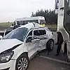 KIRMIZI IŞIKTA GEÇEN KAMYON OTOMOBİLİ BİÇTİ