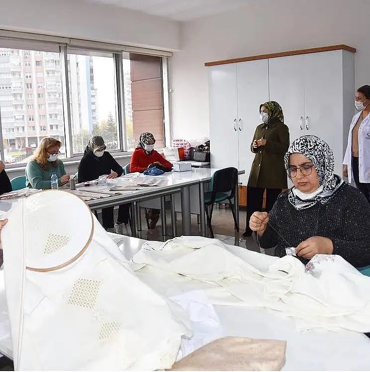 Kocasinan Akademi Tesislerinde eğitim alan kadınlar, hem üretiyorlar hem de ev ekonomisine katkı sunuyorlar.Kocasinan Belediye Başkanı Ahmet Çolakbayrakdar'ın eşi Fatma Çolakbayrakdar, akademi tesislerini ziyaret edip, kursiyerlerle bir araya geldi.