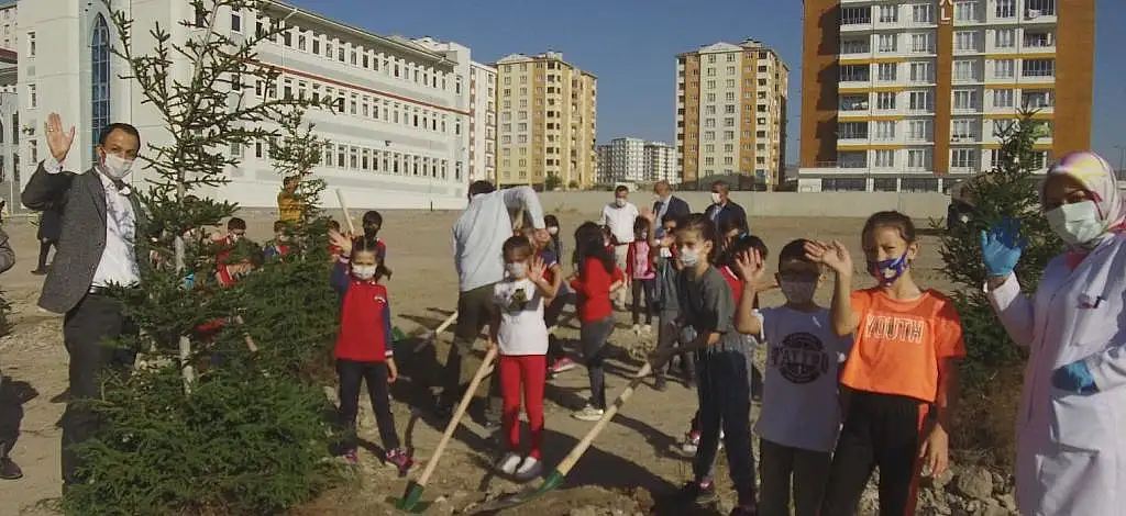 Kocasinan Belediyesi Park ve Bahçeler Müdürlüğü ekipleri, Zümrüt Mahallesi ve Erkilet Osmangazi Mahallesi’ndeki Hacı Ömer-Ayten Tepecik İlkokulu öğretmen ve öğrencileriyle birlikte ağaç dikti.