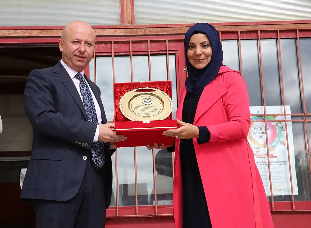 maların ardından Eğitim Bir Sen Kadınlar Komisyonu Başkanı Çiğdem Türkel, eğitim ve öğretime devamlı desteklerinden dolayı Kocasinan Belediye Başkanı Ahmet Çolakbayrakdar’a teşekkür plaketi takdim etti.