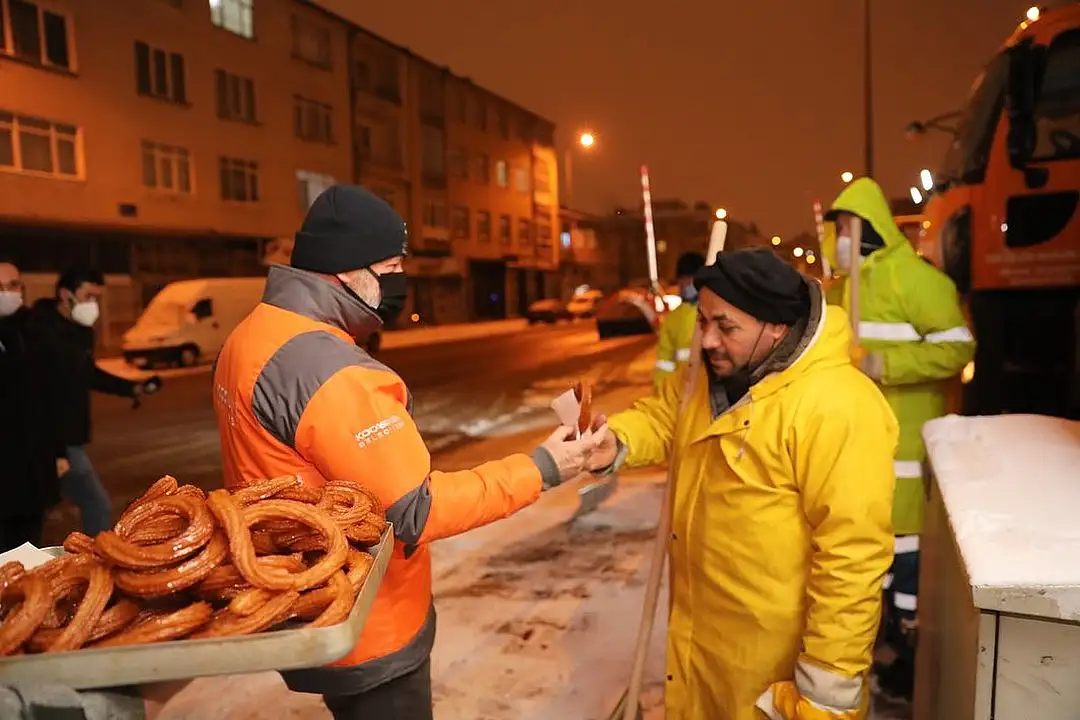 Çalışmaların eksiksiz ve daha sağlıklı olması için büyük bir titizlikle bizzat çalışmaları takip eden Başkan Çolakbayrakdar, çalışanlara tatlı ikram ederek, sohbet etti. İncelemeler sırasında vatandaş ve esnafla hasbıhal eden Başkan Çolakbayrakdar, onlara da tatlı ikram etti. Kar yağışının etkili olduğu andan itibaren tüm personelle sahada görev başında olduklarını kaydeden Başkan Çolakbayrakdar, Kayserililerin kış mevsimini daha rahat geçirebilmeleri için önceden bir dizi önlem aldıklarına dikkat çekerek, “Kar yağışıyla birlikte başlayan çalışmalarımız kesintisiz sürüyor.  Dört mevsimi ayrı güzel olan Kayseri'mizde, yoğun kar yağışı beraberinde bereket getirdi. Kar, bereket ve güzelliktir. Özellikle kırsal mahallelerde tarım, ziraat ve hayvancılıkla uğraşan hemşehrilerimizin beklediği kar yağışı gerçekleşti. Bizler de Kocasinan Belediyesi olarak bütün ekiplerimizle birlikte sahada hemşehrilerimizin ulaşımlarını daha rahat gerçekleştirebilmelerini sağlamak için çalışmalarımızı aralıksız sürdürüyoruz. Kar yağışının devam etmesiyle birlikte kaldırım, cadde ve sokaklar gibi vatandaşların yoğun olarak kullandığı alanlardan başlayıp, Kocasinan’ımızın her bir noktasında vatandaşlarımızın rahat bir şekilde ulaşım sağlamaları için gayret ediyoruz. Ekiplerimiz, 3 vardiya halinde 24 saat durmaksızın çalışmaya devam ediyorlar. Ekiplerimiz, tüm cadde, sokak ve kaldırımları gerekli ekipmanlarla temizliyor. Ayrıca kar küreği ile birlikte yaya kaldırımlarını kardan temizleyen ekiplerimiz, yaya ulaşımının daha sağlıklı ve daha güvenli olması için çalışıyor. Kayseri ve Kocasinan sakinlerimizin kar keyfini doyasıya yaşamaları için yoğun gayret sarf ediyoruz” ifadelerini kullandı.