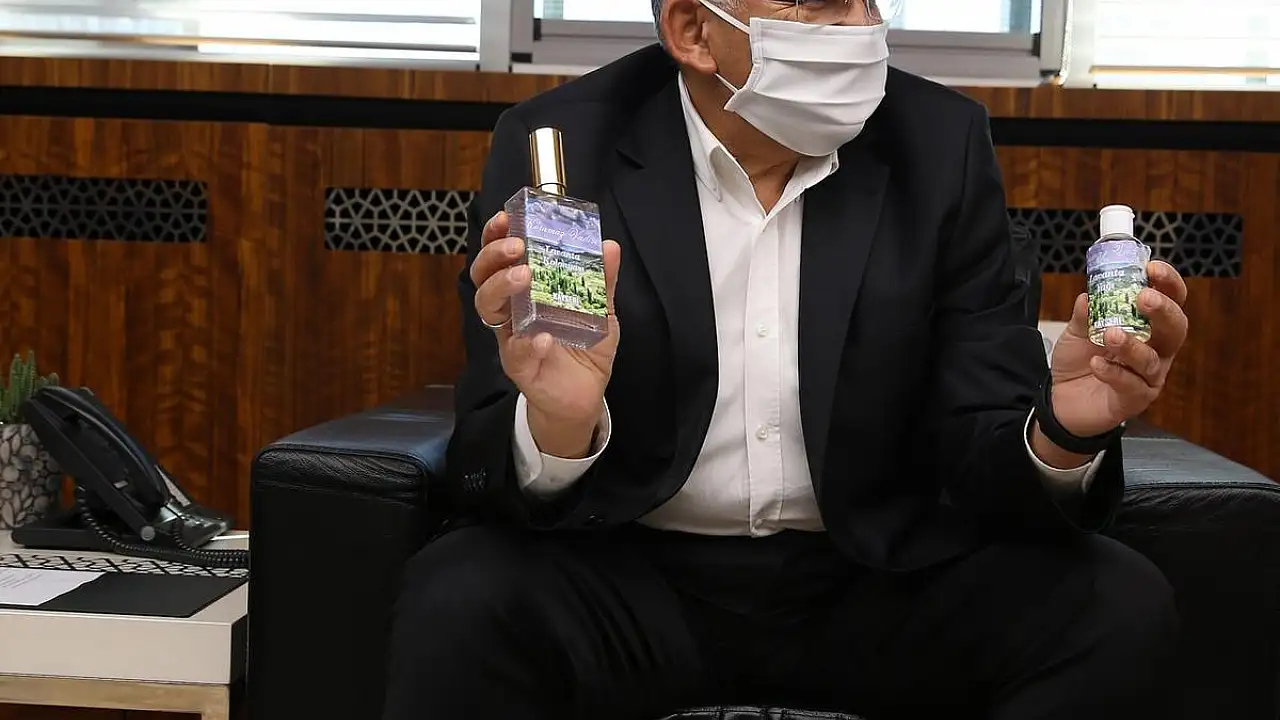 Lavanta yağı ve kolonyasının ismini ‘Koramaz Vadisi’ koyan çiftçi İsmail Kumbara, ilk ürününü Büyükşehir Belediye Başkanı Dr. Memduh Büyükkılıç’a takdim etti.