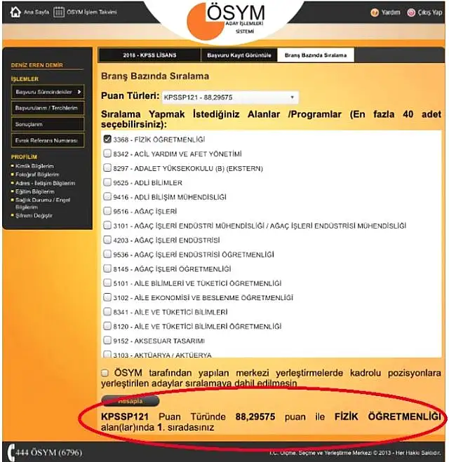 Deniz Eren Demir adlı öğretmen adayı, fizik alanında 88.295 puanla Türkiye 1'incisi oldu. ÖSYM'de Türkiye 1'incisi olduğuna dair belgeyi kendisine iletti. Fizik birincisi Demir, mesleğini yapmak için sözleşmeli öğretmenlik sınavına girdi. Ancak, mülakatta 54 puan verilerek elendi.