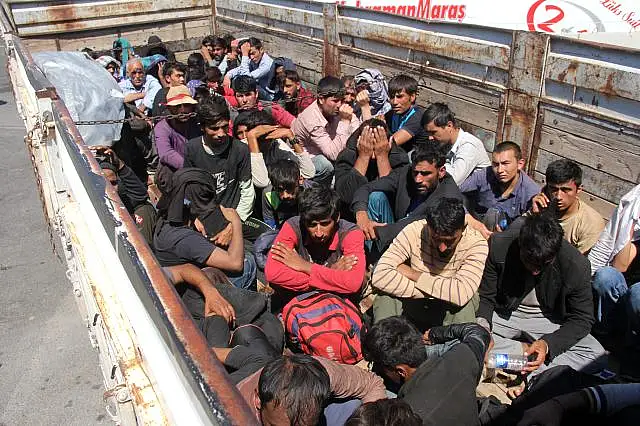 Adana'da şüphe üzerine durdurulan ve sürücünün 'Küçükbaş hayvan yüklü' dediği kamyonun içinden Afganistan ve Pakistan uyruklu 61 kaçak göçmen çıktı.Adana'da sürücüsünün 'küçükbaş hayvan yüklü' dediği kamyonun kasasında Afganistan ve Pakistan uyruklu 61 ka