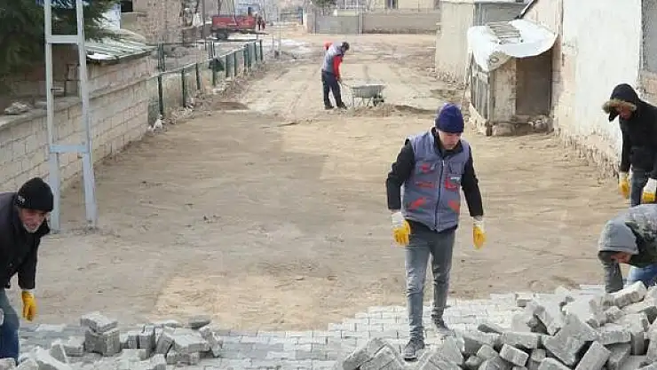 Develi Belediyesi'nin kırsal mahallelerde yürüttüğü parke çalışmaları kış şartlarına rağmen hız kesmeden devam ediyor.