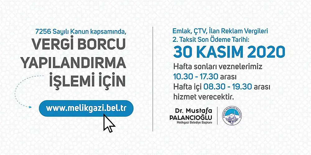 MELİKGAZİ BELEDİYESİ HATIRLATTI, VERGİ BORÇLARINIZI YAPILANDIRMAYI UNUTMAYIN!