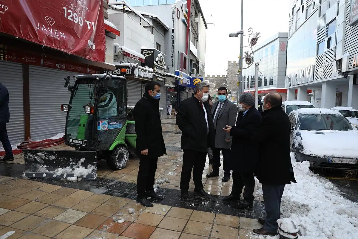 Sabah erken saatlerde Cumhuriyet Mahallesinde karla mücadele çalışmalarını yerinde inceleyen Melikgazi Belediye Başkanı Dr. Mustafa Palancıoğlu, “Kar yağışının hayatı olumsuz etkilememesi için ekiplerimiz kaldırım ve yollarda küreme ve tuzlama çalışması yapıyor. Ulaşımın aksamaması için gece boyunca görevlerinin başında bulunan karla mücadele ekiplerimizin çalışmalarını yerinde inceledim. Hemşerilerimizi zorda bırakmamak için 7/24 esasına göre görevimizin başındayız. Yoğun kar yağışlarında trafik akışının sürekliliğini sağlamak için tüm ilçelerimizde toplamda 77 araç ve 280 personel görev başında karla mücadele çalışmalarını sürdürüyoruz. Karla mücadele için ekiplerimiz, gece ve gündüz olmak üzere iki vardiya çalışacak. Özellikle eğimli yollar, sağlık merkezleri önü, yaya yollarında ekiplerimiz var gücüyle çalışıyor. Hemşehrilerimden dikkatli olmalarını özellikle de kış lastiği olmadan trafiğe çıkmamalarını ve mümkünse toplu taşımayı tercih etmelerini rica ediyoruz.” dedi.