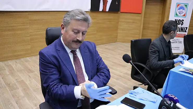 Melikgazi Belediyesi’nde korona virüs için olağanüstü meclis toplantısı düzenlendi. 4 maddenin görüşülüp karara bağlandığı toplantı öncesinde meclis üyeleri tedbir için eldiven giydi, birer koltuk mesafeyle oturdu.