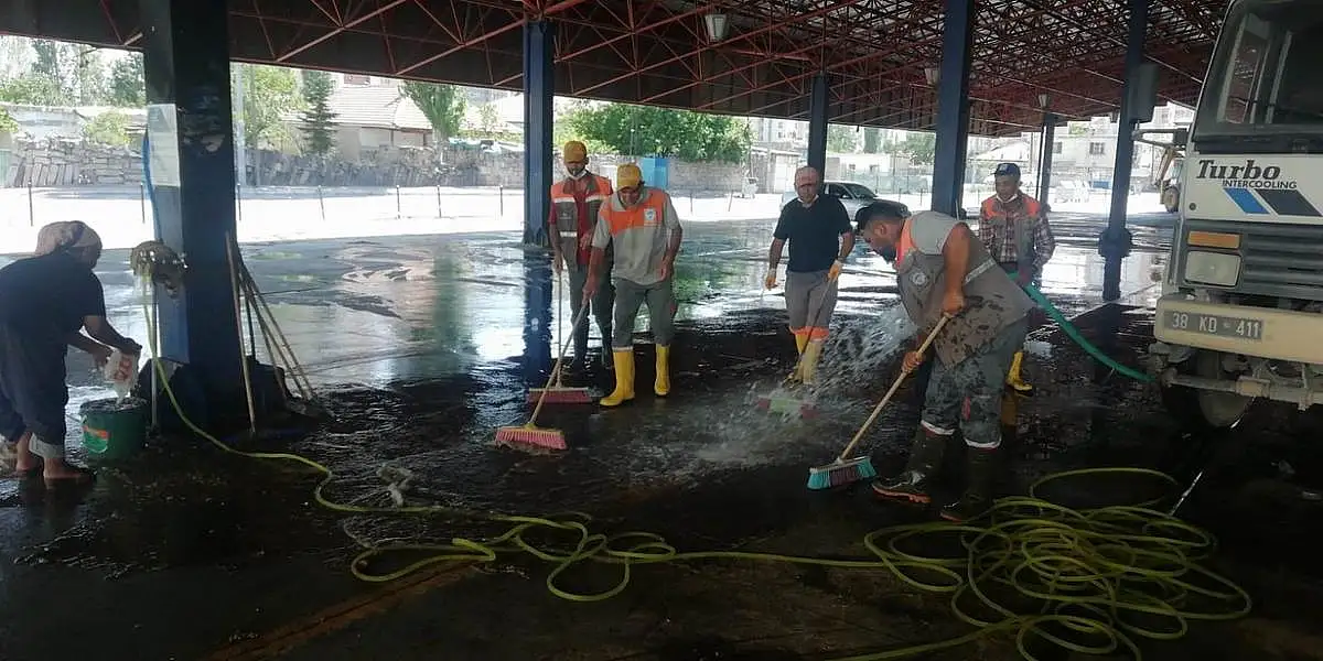 MELİKGAZİ'DE KURBAN KESİM YERLERİ TEMİZLENEREK DEZENFEKTE EDİLİYOR
