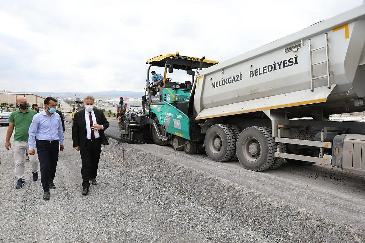 Mimarsinan Organize Sanayi Bölgesinde yapımı devam eden 2,5 kilometrelik yol çalışmasında son aşamaya gelen Melikgazi Belediyesi bölgede büyük ihtiyacı gideriyor.