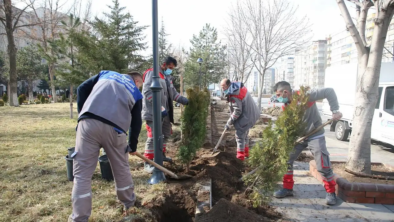 MELİKGAZİ'NİN PARKLARINA AĞAÇ VE SÜS BİTKİSİ DİKİMİ BAŞLADI