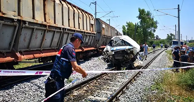 Mersin'in Tarsus ilçesinde yük treni ve servis minibüsü çarpıştı. Gelen ilk bilgilere göre 1 kişi öldü, 2'si ağır 4 kişi yaralandı.Mersin'in Tarsus ilçesinde yük treninin servis minibüsüne çarpması sonucu ilk bilgilere göre 1 kişi öldü, 2'si ağır 4 kişi yaralandı.