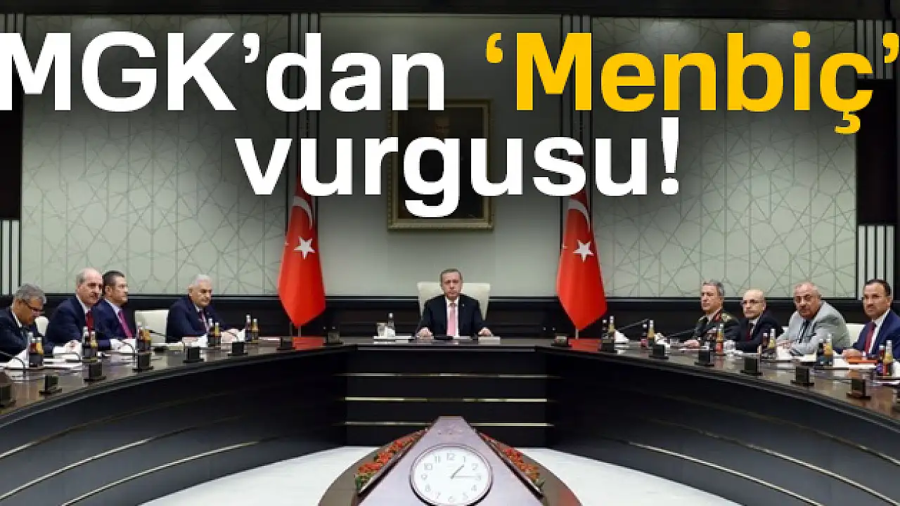 Cumhurbaşkanı Recep Tayyip Erdoğan başkanlığında Cumhurbaşkanlığı Külliyesinde toplanan MGK sonrasında yapılan açıklamada, “Münbiç’teki teröristlerin bir an önce bölgeden uzaklaştırılması gerektiği, aksi takdirde Türkiye’nin, diğer bölgelerde olduğu gibi burada da bizzat inisiyatif kullanmaktan çekinmeyeceği belirtilmiştir” ifadelerine yer verildi.