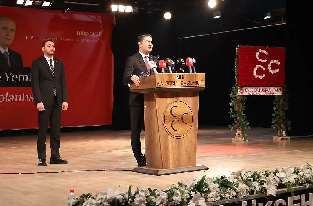 Programın açılış konuşmasını gerçekleştiren MHP Kayseri İl Başkanı Enes Ertuğrul Kalın, “Liderimiz, Türkmen Beyimiz Devlet Bahçeli Bey'in tensipleriyle üstlenmiş olduğumuz Kayseri İl Başkanlığı vazifesini gurur ve şerefle taşıyacağıma, bu makamın kutsaliyetine leke düşürmeden, partimizin ve liderimizin çizgisini dikkatle takip edeceğime sizlerin huzurlarınızda söz veriyorum. Bizleri bu kutlu mevkie layık gören genel başkanımızın emrinde, teşkilatımız ve yönetimimizle birlikte yayından fırlamış bir ok gibi hedefimize doğru kararlı ve dosdoğru bir şekilde yürüyeceğiz. Kayseri'de sıkılmadık el, girilmedik hane bırakmadan, her bir hemşehrimizi kucaklayacak, üç hilalli sancağımızı Kayseri'de daha da yukarıya taşımanın gayret ve kararlılığında olacağız. Boşa harcanacak vaktimiz yoktur. Dünya Türklüğünün umudu, mazlum milletlerin gözü bizdedir. Bizler yaptığımız her işi milletimizin çıkarları için, üzerinde yaşadığımız aziz vatan topraklarına olan vefamızı göstermek için yapmalıyız. Bölgemizin ateş çemberine çevrildiği bu günlerde liderimizin gösterdiği yolda ortaya koyacağımız azim ve gayretlerimizden milletimiz ve memleketimiz için yeni imkanlar doğacaktır. Milliyetçi Hareket, mayası şehitlerle karılmış mübarek Anadolu’nun, şehit olmaya doymayan oğullarının, vatan ve millet fedailerinin toplandığı bir mukaddes ordugâh, Türklüğün bekası için çatılmış çökmez bir tavandır" dedi.