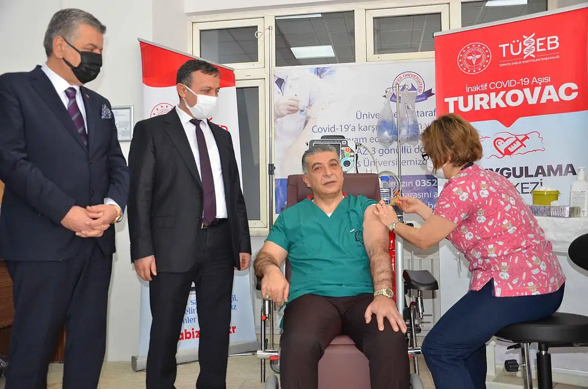 Erciyes Üniversitesi Rektörü Prof. Dr. Mustafa Çalış da yaklaşık 1.5 yıl süren çalışma sonrasında TURKOVAC aşısının Acil Kullanım onayı almasından dolayı mutluluk duyduklarını ifade etti.