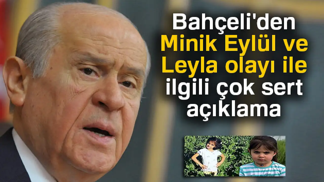 MHP Genel Başkanı Devlet Bahçeli, 8 yaşındaki Eylül Yağlıkara cinayetine ilişkin, "Çocuk katilleriyle mücadele değil, savaşmak lazımdır. Ve bu savaş kazanılmalıdır, kazanılacaktır. İdamsa idam, cezaysa en ağır ceza, tecritse tecrit; gereği her neyse alçak barbarlara revadır, layık oldukları akıbet de bellidir. Bundan kaçamayacaklar, korkaklıklarının, hıyanetlerinin her türlü sonuçlarına katlanacaklardır" dedi.