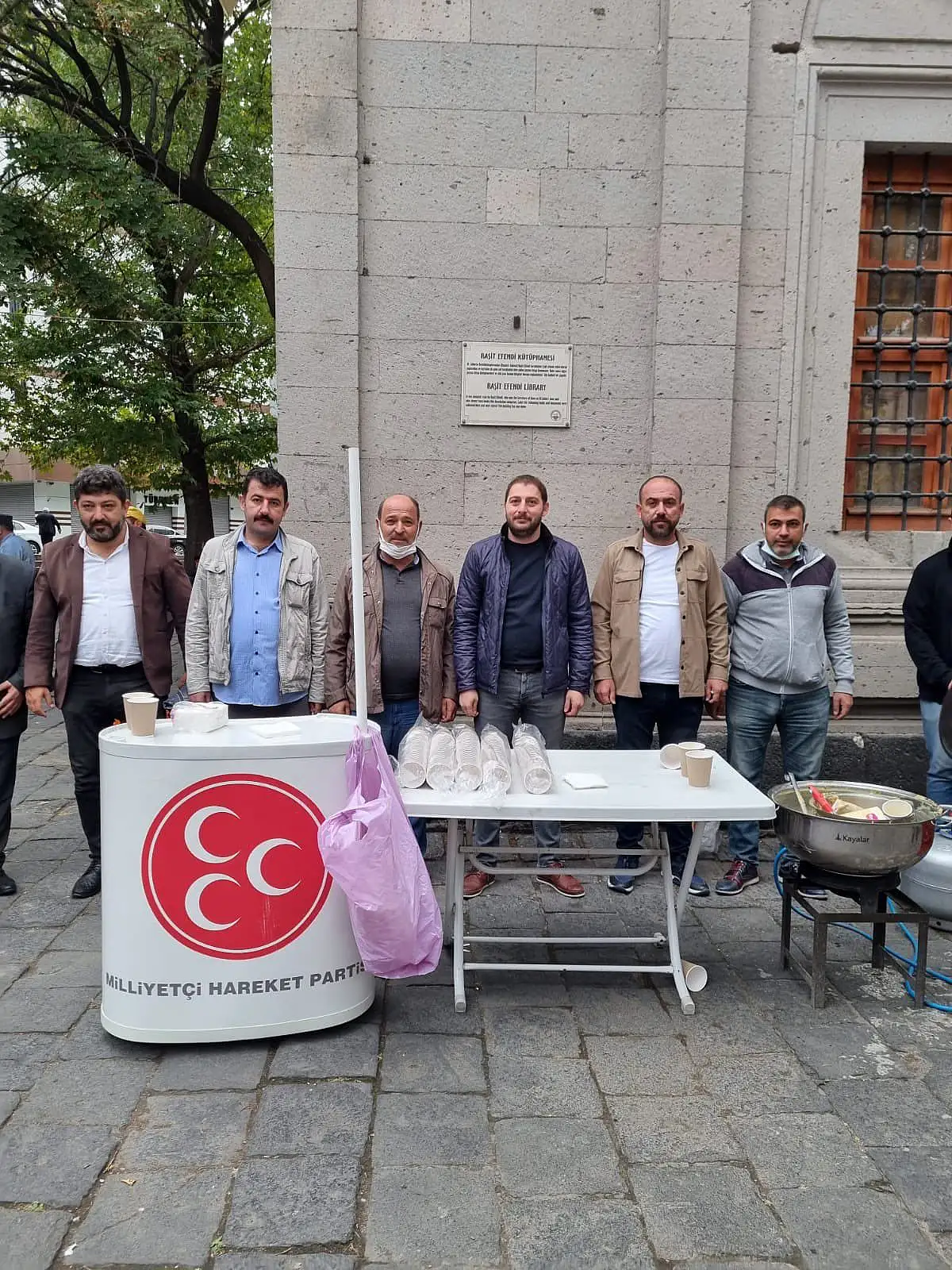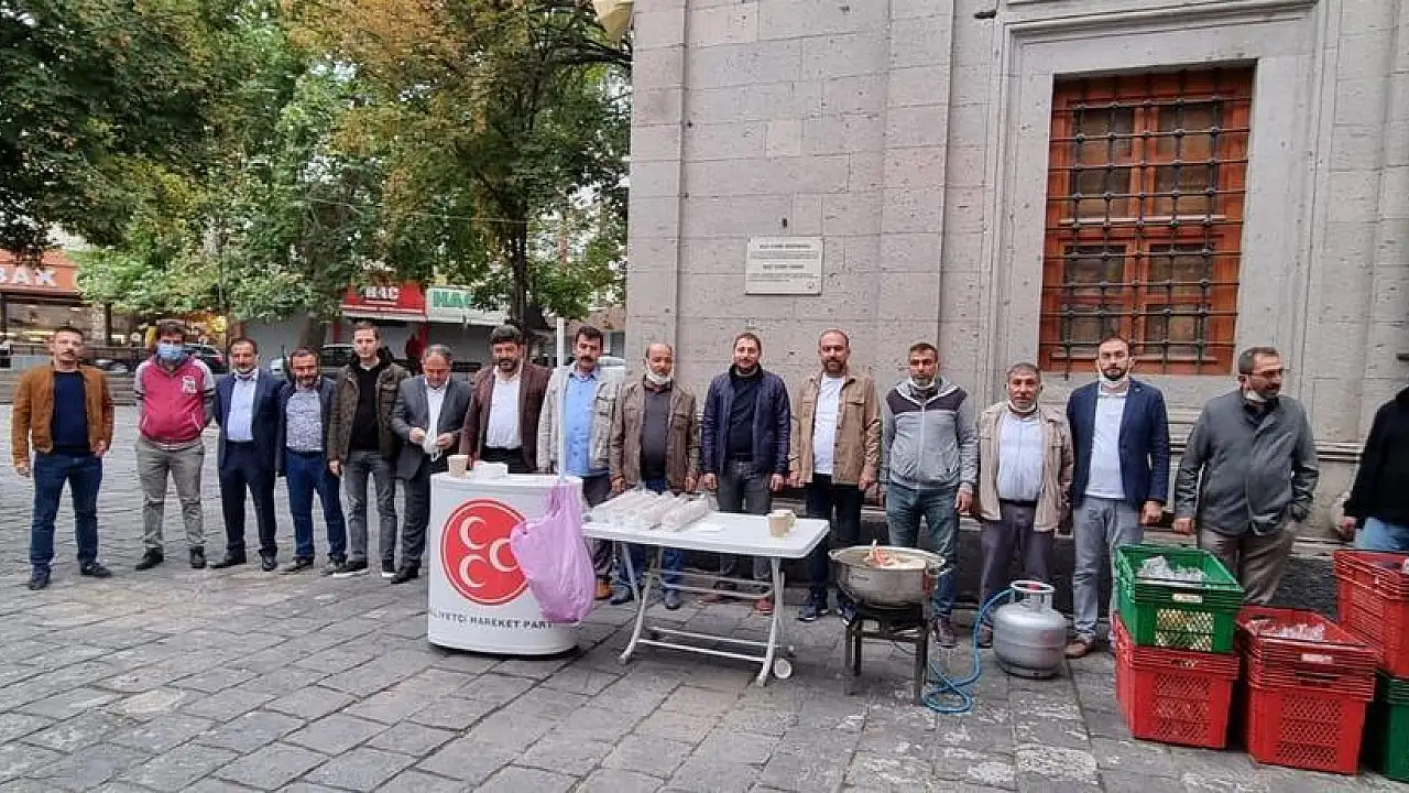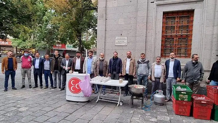 Milliyetçi Hareket Partisi Melikgazi İlçe Başkanlığı tarafından sabah namazından çıkan vatandaşlara çorba ikram edildi.Milliyetçi Hareket Partisi Melikgazi İlçe Başkanlığı, bu sabah Camii Kebir'de sabah namazından çıkan vatandaşlara çorba ikramında buluna